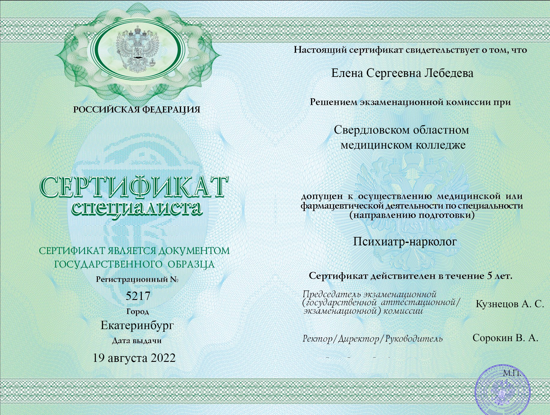 Елена Сергеевна Лебедева врач нарколог клиники доктора Стукаловой в Невельске